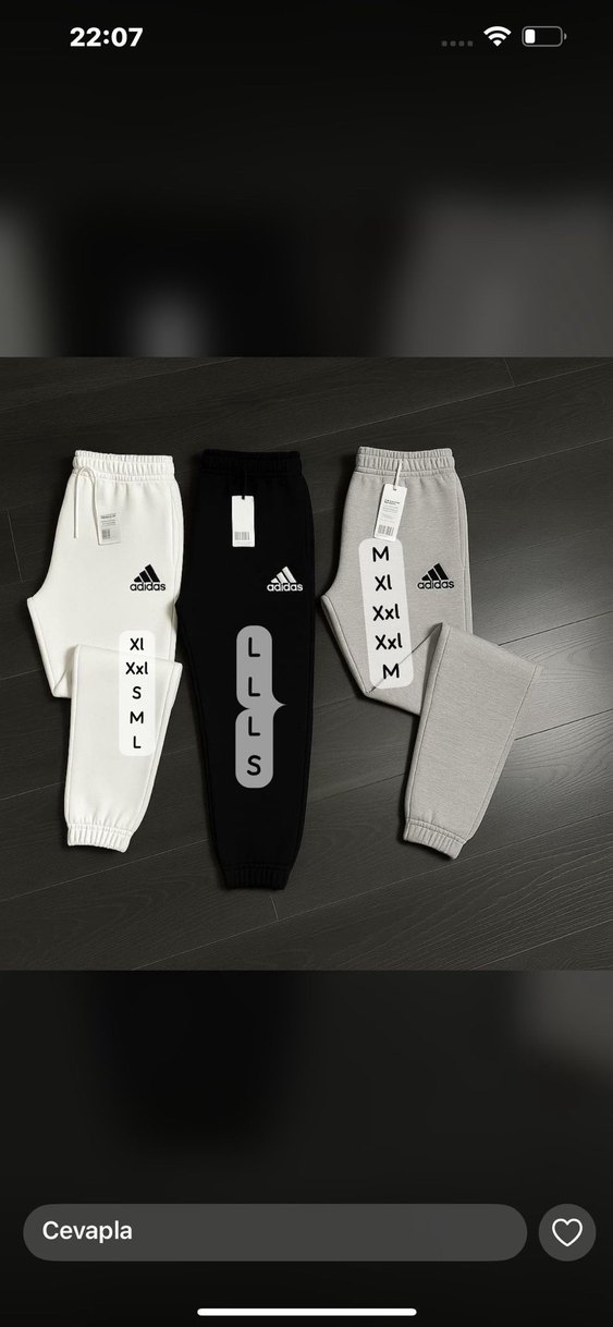 Gri pamuklu, rahat kesim Adidas baskılı erkek eşofmanı. Velcro detaylı, normal boy, sportif sokak stiline uygun. ♂️