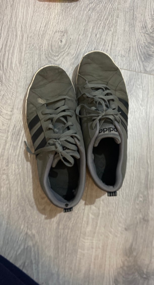 orijinal 45 numara Bağcıklı tasarıma sahip gri Adidas erkek spor ayakkabısı, kauçuk tabanlıdır. Spor ve günlük sokak stiline uygundur.