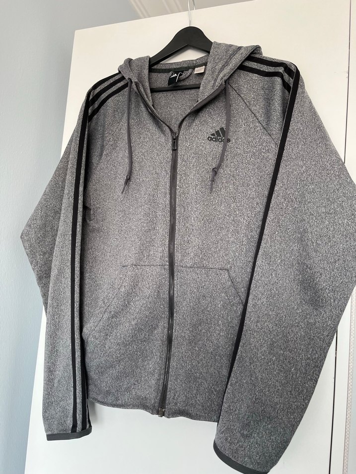 Gri Adidas Fermuarlı Erkek Sweatshirt