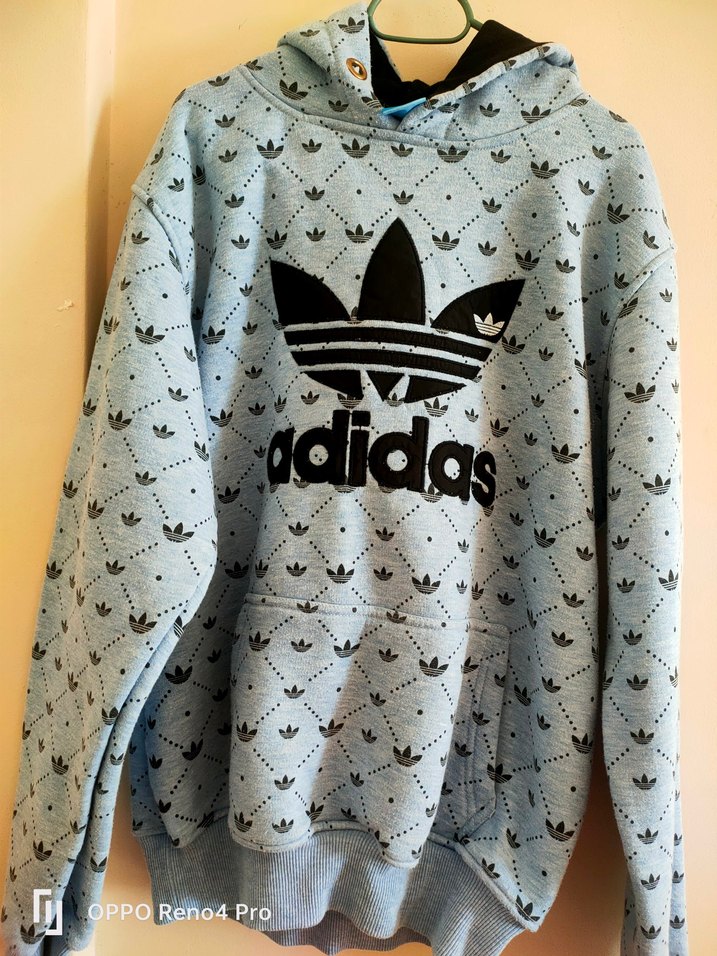 Gri renkli Adidas erkek sweatshirt, bol kesim, uzun kollu ve kapüşonludur. Yumuşak, örme tüylü kumaştan yapılmıştır ve baskılı desene sahiptir. Günlük rahat kullanım için uygundur.
