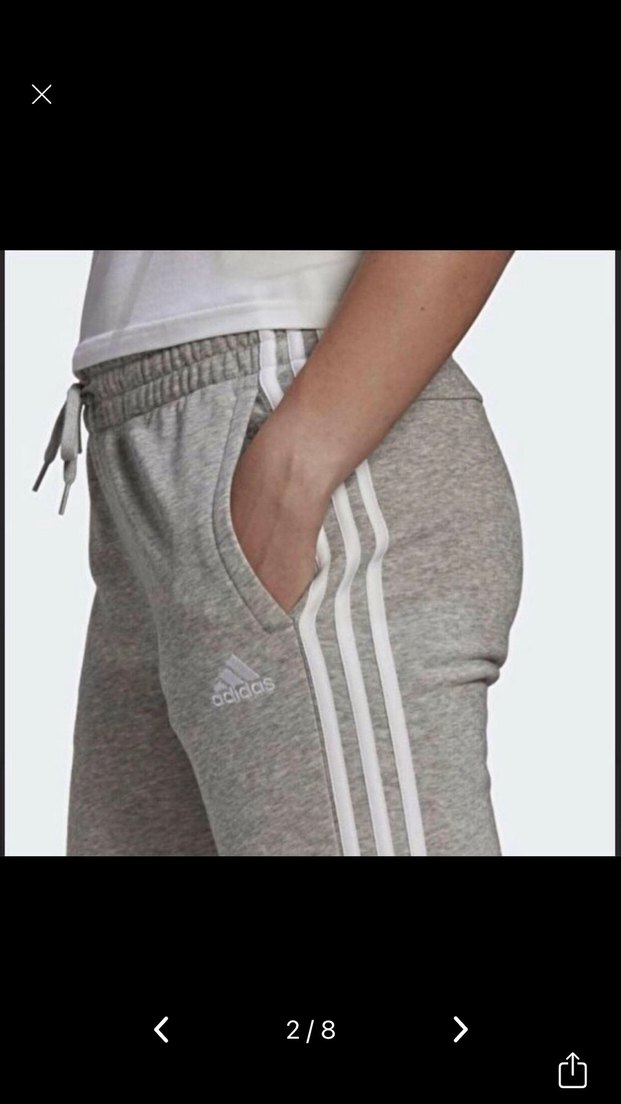 Gri pamuklu, elastik bel ve çizgili detaylı, spor ve sokak stiline uygun, Adidas logolu mini sweatpant.