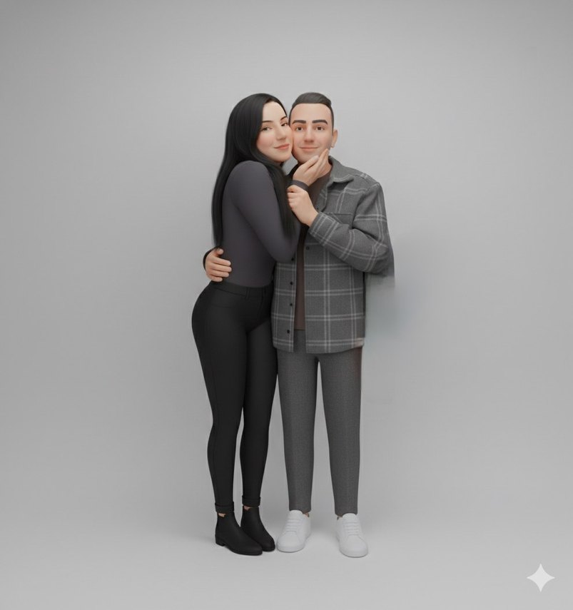 Gri renkte, modern kıyafetli çift aksiyon figürleri. Detaylı yüz ifadeleri ve samimi duruşlarıyla koleksiyon için uygun.