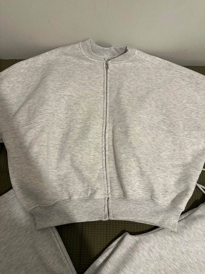 Gri renk, bol kesim kadın sweatshirt. Yuvarlak yaka ve uzun kollu, yumuşak keten kumaştan üretilmiştir. Tam ön fermuarlı ve desensiz sade tasarıma sahiptir. Günlük kullanım için uygundur.