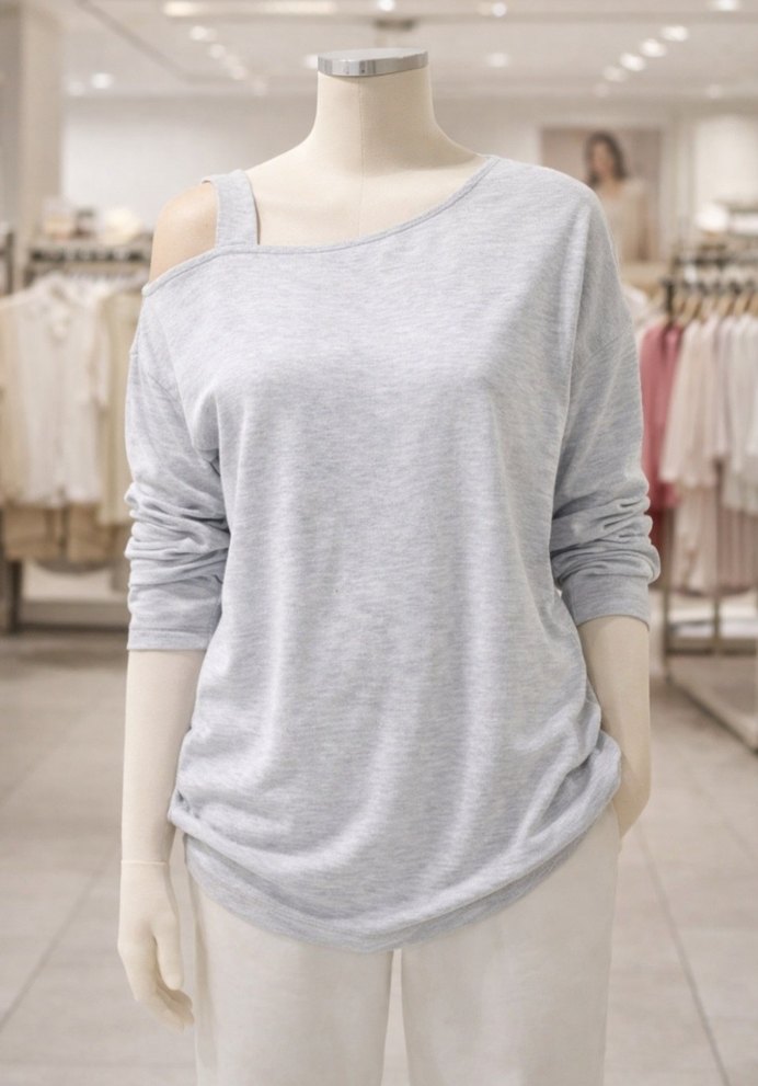 Gri Asimetrik Omuz Detaylı Kadın Sweatshirt