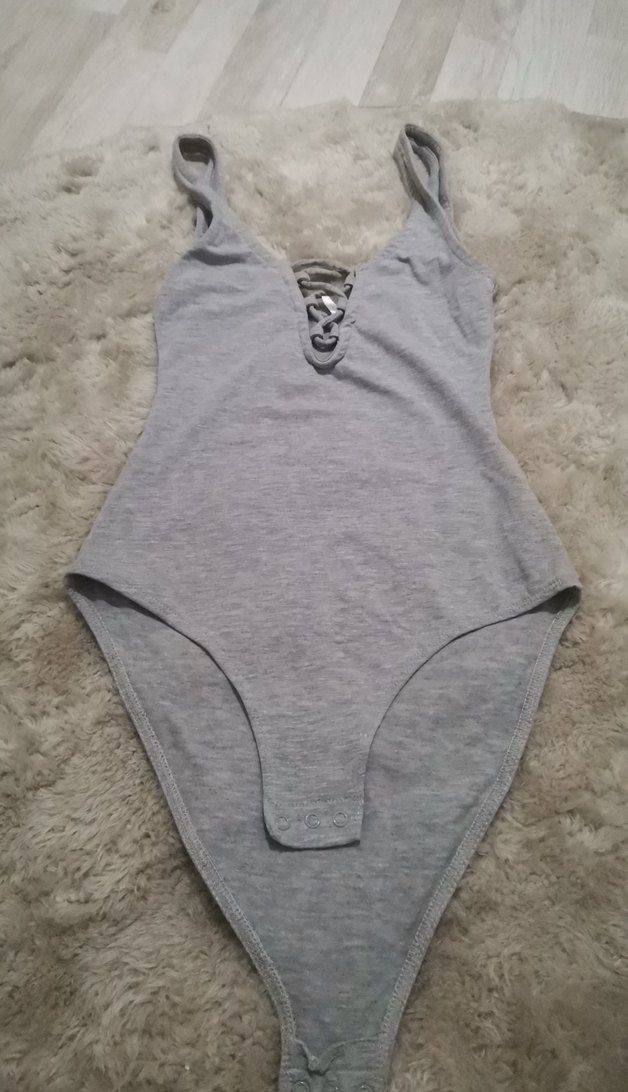 Gri askılı, V yakalı ve bağcıklı detaylı body, rahat ve şık bir görünüm sunar. Desensiz ve yumuşak kumaştan üretilmiştir. Kullanılmadı 34 beden