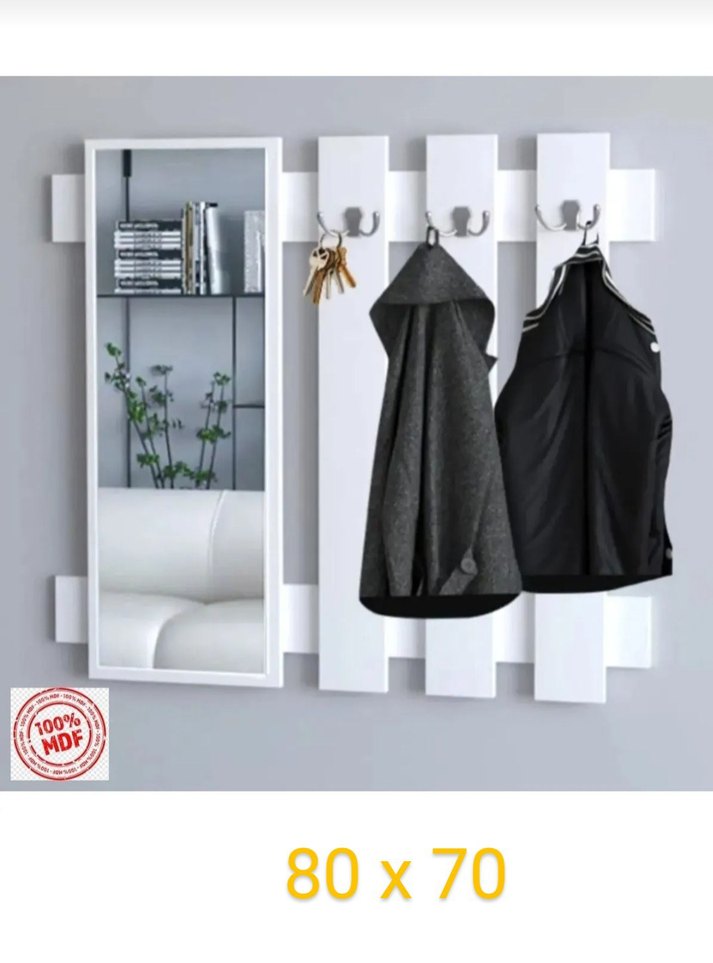 80x70 cm ölçülerinde, MDF malzemeden yapılmış gri askılı ve aynalı dolap organizatörü. Ceket ve anahtarlar için uygun.