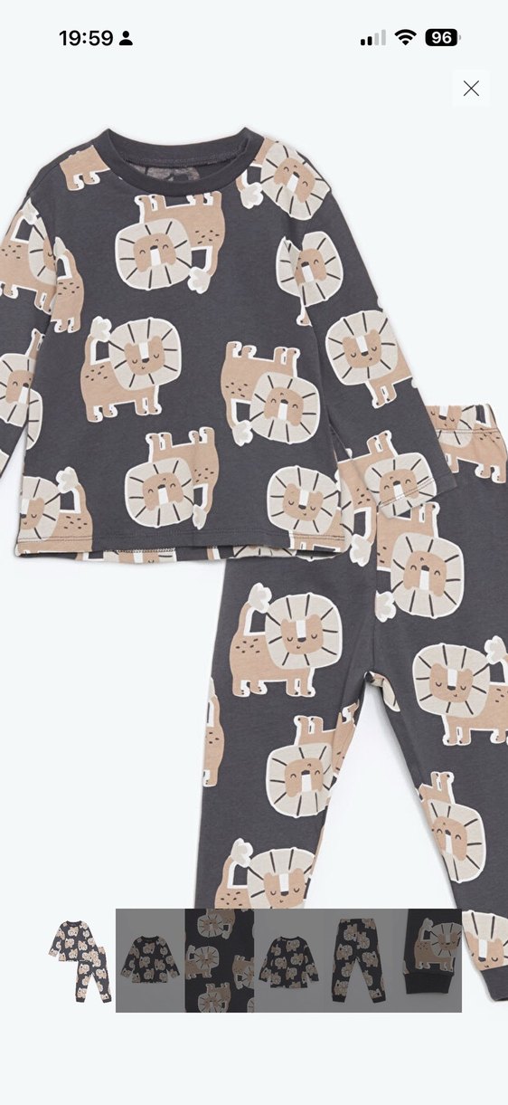 Gri renkli, aslan desenli yumuşak ve sıcak kumaştan çocuk pijama takımı.