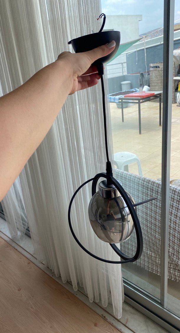 Gri renkte, modern ve minimal tasarımlı asma lamba ve kablo seti.