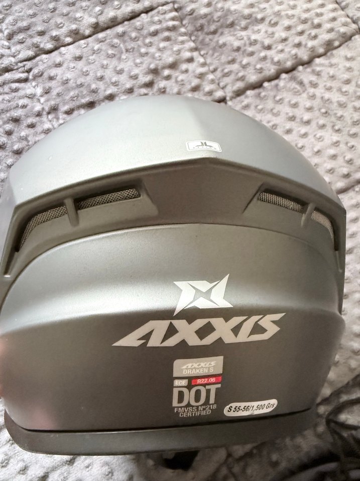Gri renkte, baskılı desenli ve tokalı metal Axxis biker kask. DOT sertifikalı güvenlik sağlar.