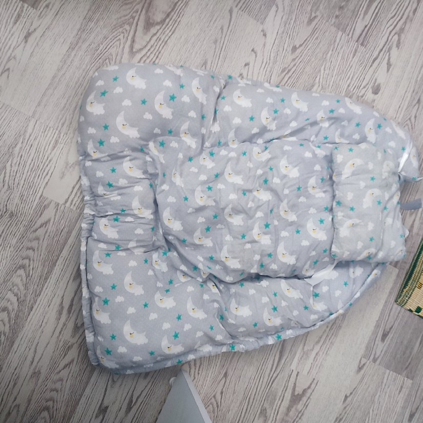 Gri Ay ve Yıldız Desenli Bebek yatağı
