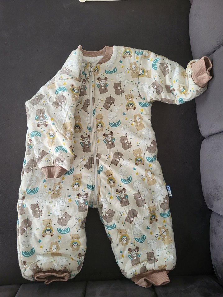 fermuarkı ve ayıcık desenli gri bebek 1.5 tog uyku tulumu, rahat bir kıyafettir.