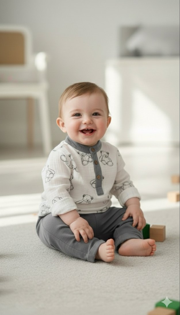 Gri ayıcık desenli Uzun Kollu Bebek ikili takım