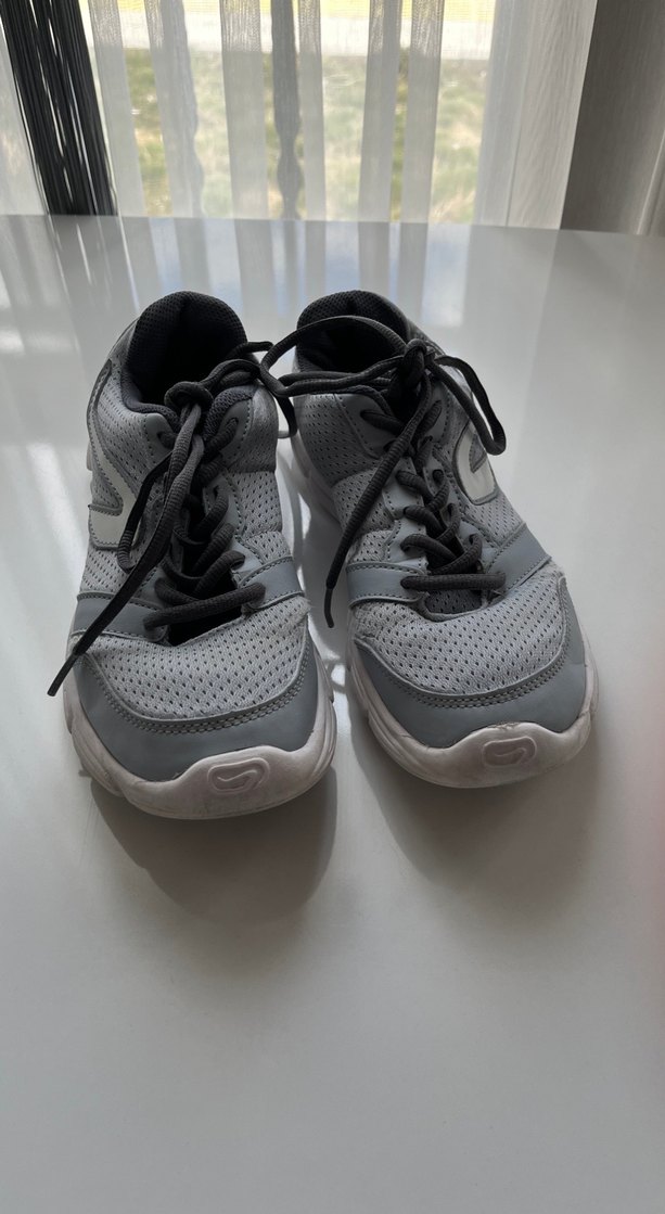 Bağcıklı, kauçuk tabanlı gri basketbol ayakkabısı, nefes alabilir malzemeden, spor ve günlük sokak stili için uygun. Ayağıma olmadığı için satıyorum