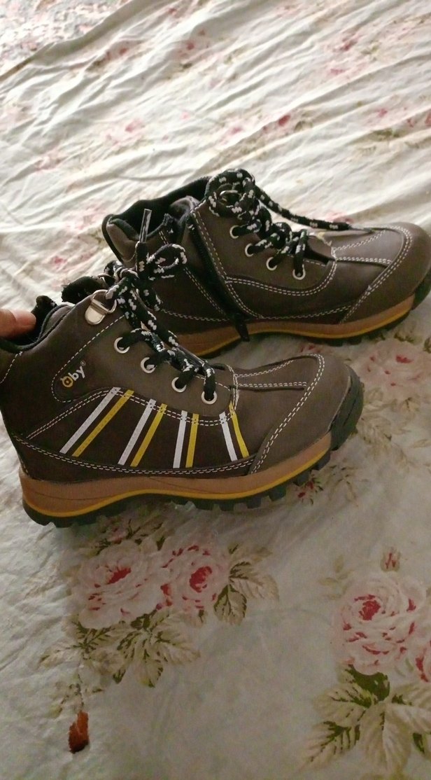 Gri bağcıklı, kauçuk tabanlı erkek çocuk botu. Sokak tarzına uygun, çizgili yan detayları bulunan desensiz model.