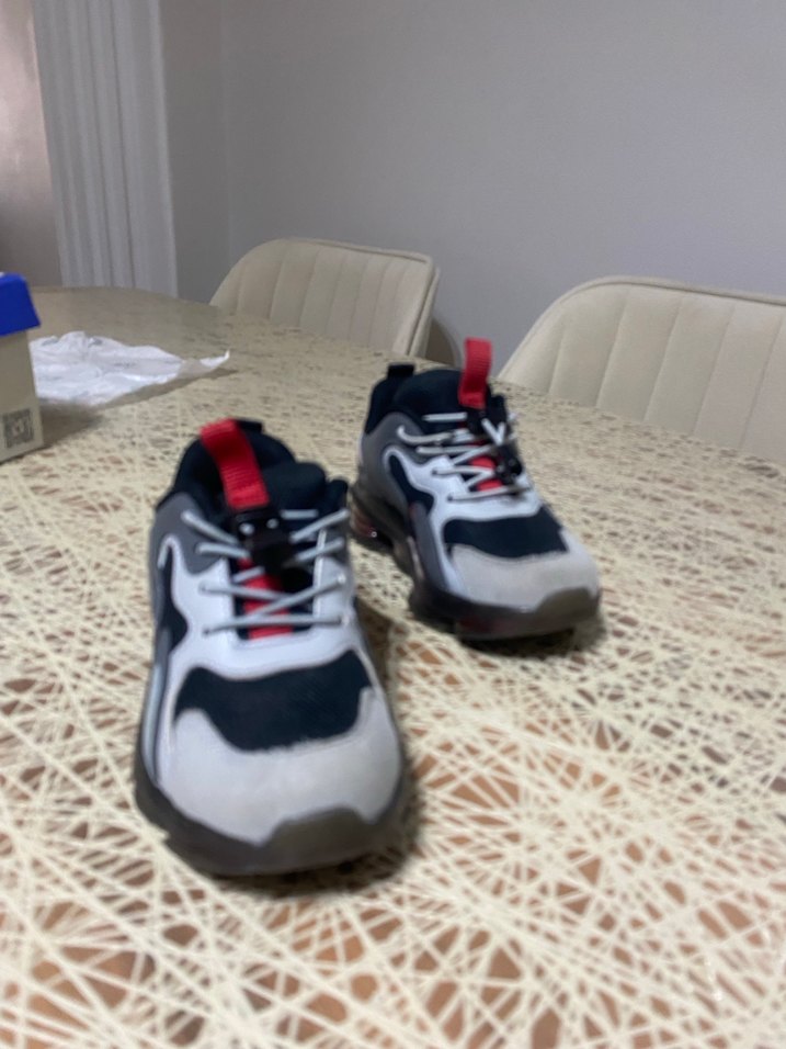 Gri bağcıklı erkek çocuk spor ayakkabısı, bağcıklı ve cırt cırtlı, kauçuk tabanlı ve bağcıklı sokak tarzı ayakkabı. Rahat ve modaya uygun.