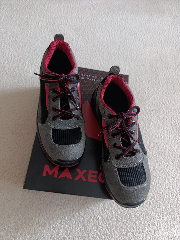 Gri renkli, bağcıklı erkek iş ayakkabısı. Kauçuk tabanlı, MAXEO markalı, fiberglas burun darbeye dayanıklı 36-48 numara aralığında sınırlı sayıda dar kaliptir