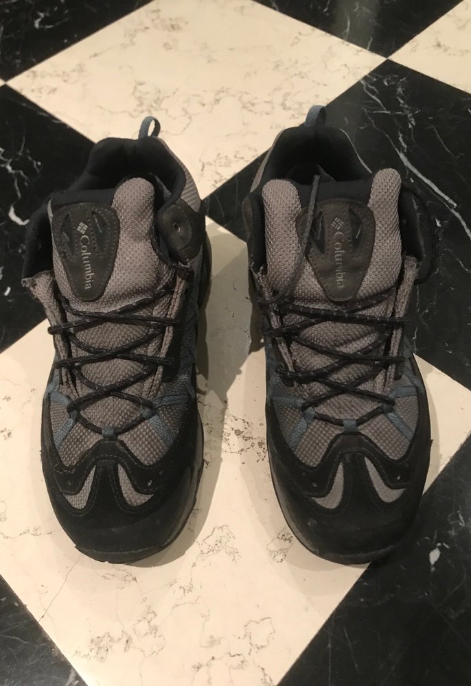 Gri renkli, kauçuk malzemeden yapılmış bağcıklı erkek outdoor ayakkabısı. Athleisure ve goth tarzıyla uyumlu, trend casual giyim için uygun.