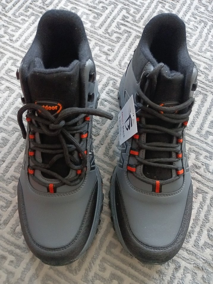 Gri renkli, bağcıklı erkek outdoor ayakkabısı. Kauçuk tabanlı, sokak stili ve rahat athleisure görünümüne uygun, dayanıklı ve konforlu.