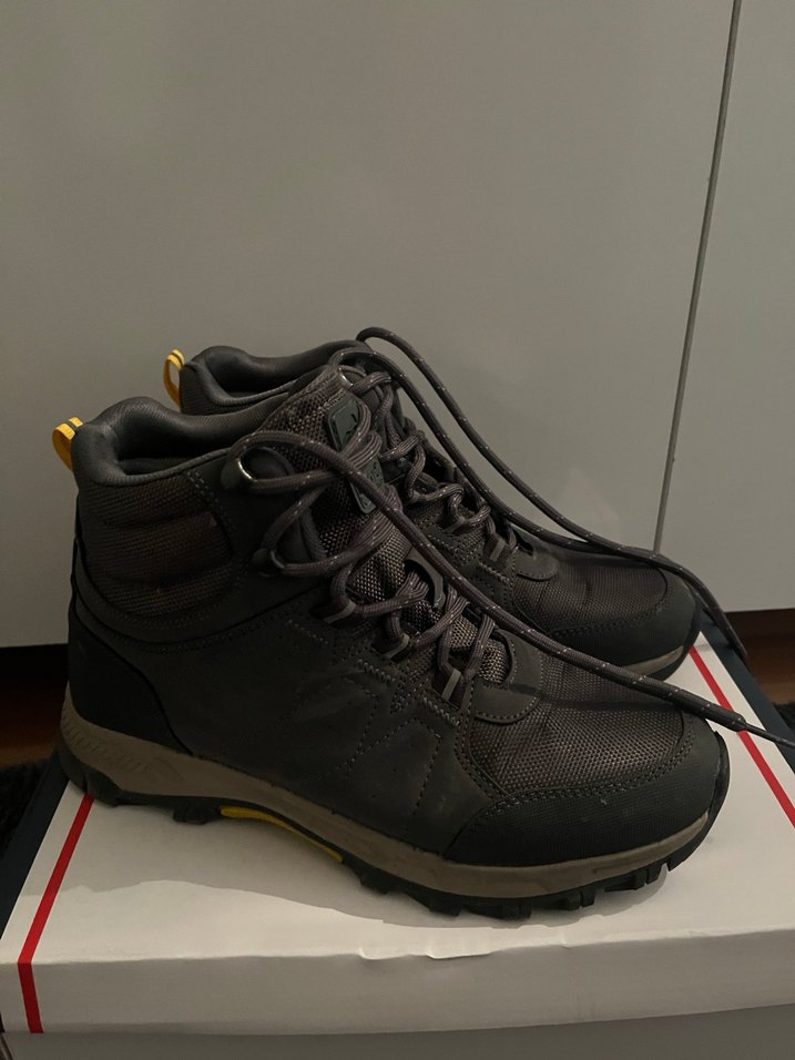 Gri renkte, bağcıklı erkek outdoor botları, dayanıklı kauçuk malzemeden üretilmiştir. Sokak stili ve rahat günlük kullanım için uygundur.yeni iki kere giyildi