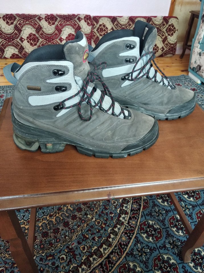 Gri renkte, bağcıklı ve kauçuk malzemeden yapılmış erkek outdoor botları, günlük ve açık hava kullanımı için uygundur. no 45.5 tur, ürün sıfırdır,hakiki nubuk deridir.