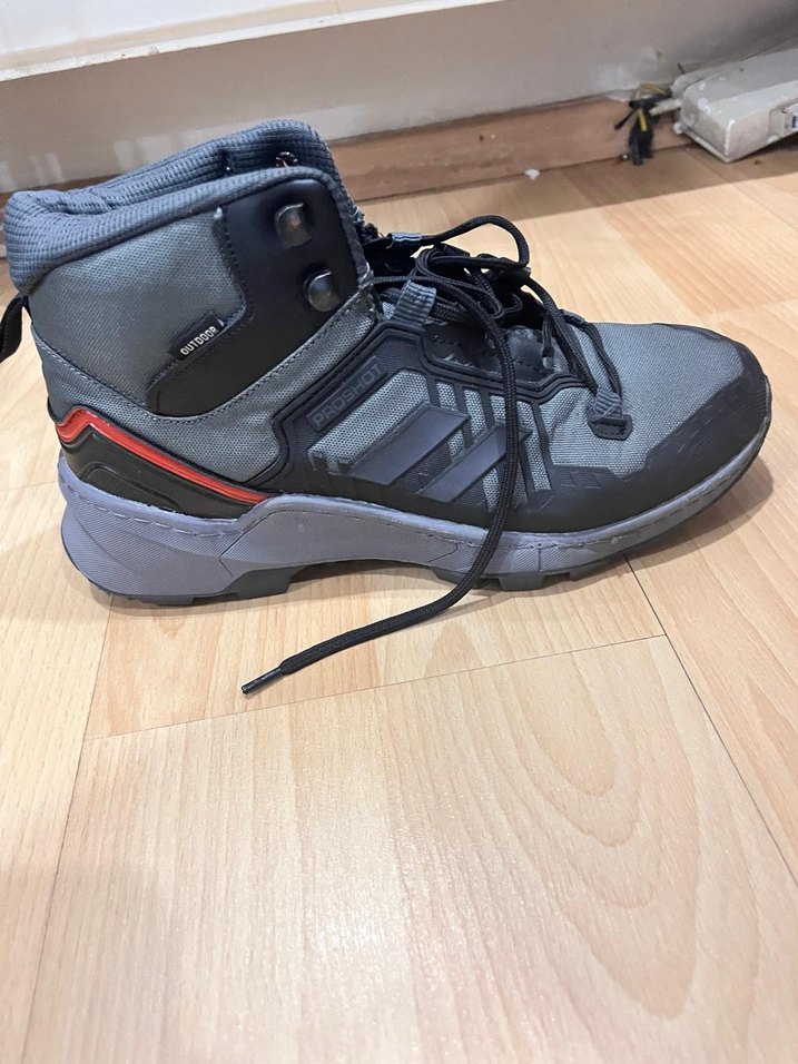 Gri renkli, bağcıklı erkek outdoor ayakkabısı, spor ve sokak stili için uygundur. Dayanıklı kauçuk tabanlı ve trend görünümlüdür.