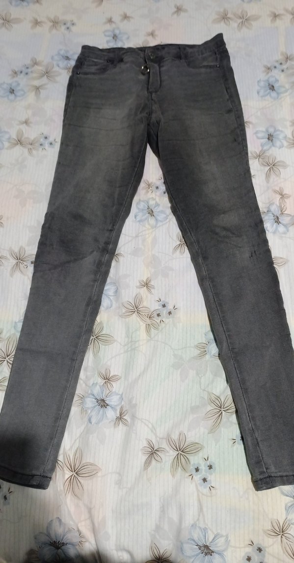 Gri bağcıklı, normal boy, regular kesim ve batik desenli kadın denim pantolon. Günlük kullanım için uygundur, sokak tarzına uygun.