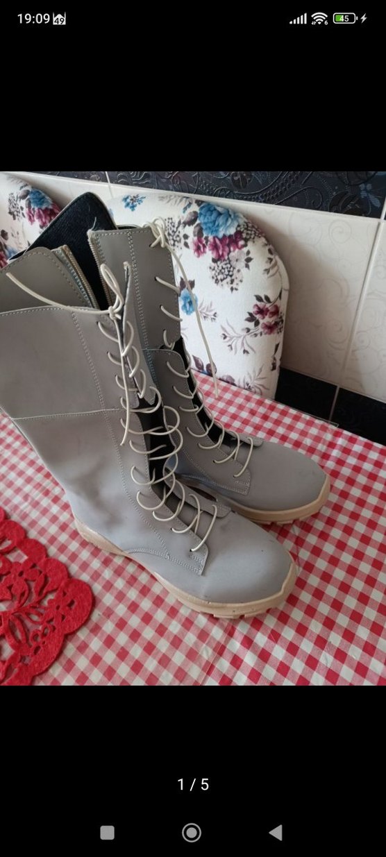 Gri Bağcıklı Kadın Dolgu Topuk Bot