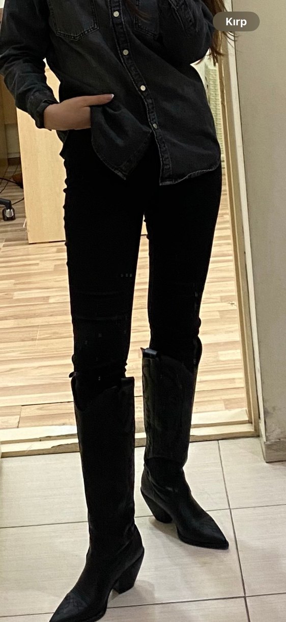 Bağcıklı bel ve bağlama detaylı, gri renkli, dar kesim midi boy kot pantolon. Günlük kullanıma uygun, sokak stiline uygun tarzda.