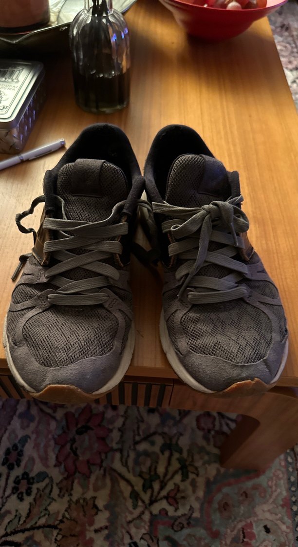 Gri bağcıklı, düz tabanlı kadın spor ayakkabısı. Spor ve günlük kullanıma uygun, desensiz sade tasarım.