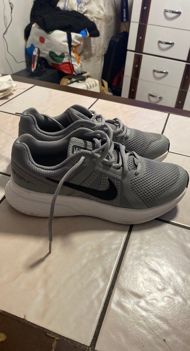 Gri bağcıklı kadın spor ayakkabısı, lastik tabanlı, düz tabanlı, sportif ve günlük sokak stili için uygun. Desensiz rahat tasarım.