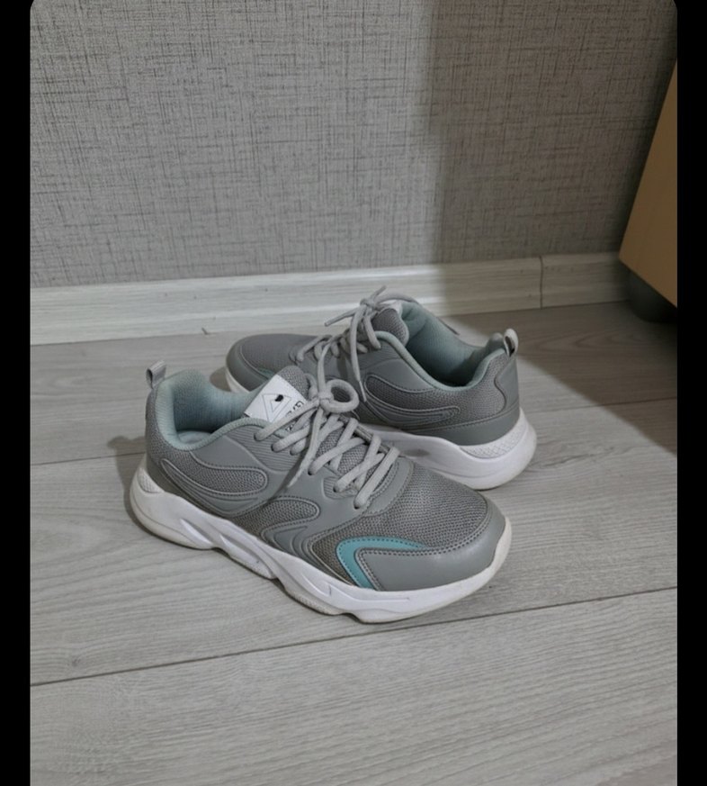 Gri renkte, bağcıklı ve düz tabanlı kauçuk kadın spor ayakkabısı, spor ve sokak stili için uygundur. sorunsuz