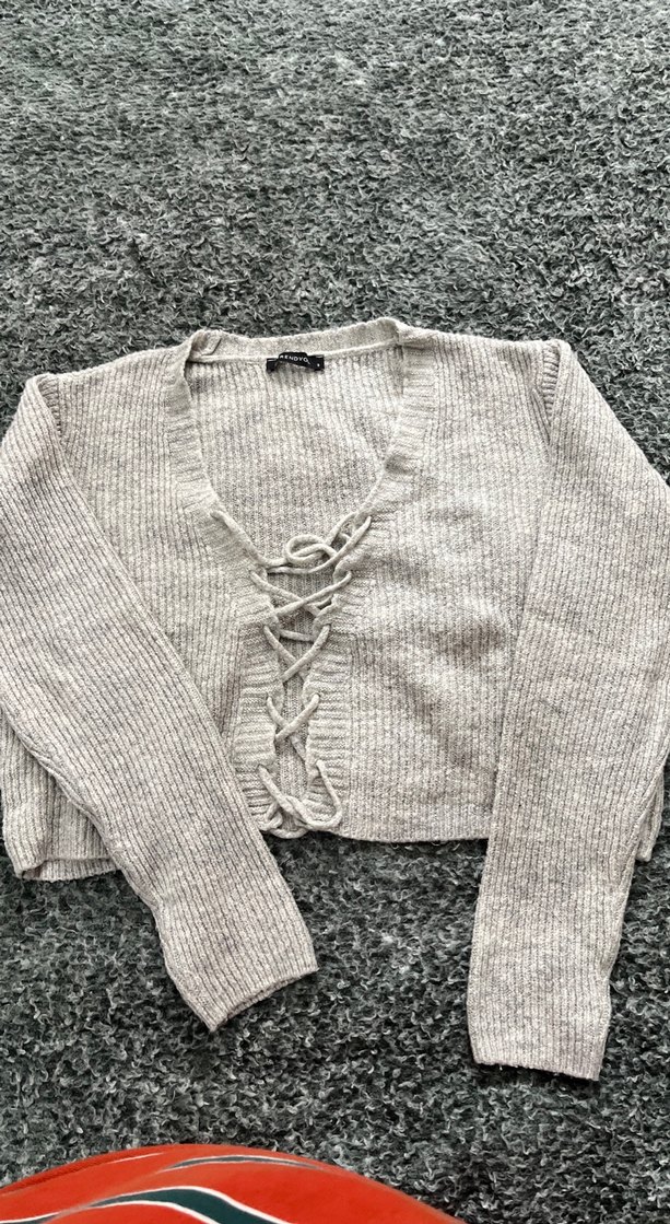 Gri Bağcıklı Kadın Triko Kazak
