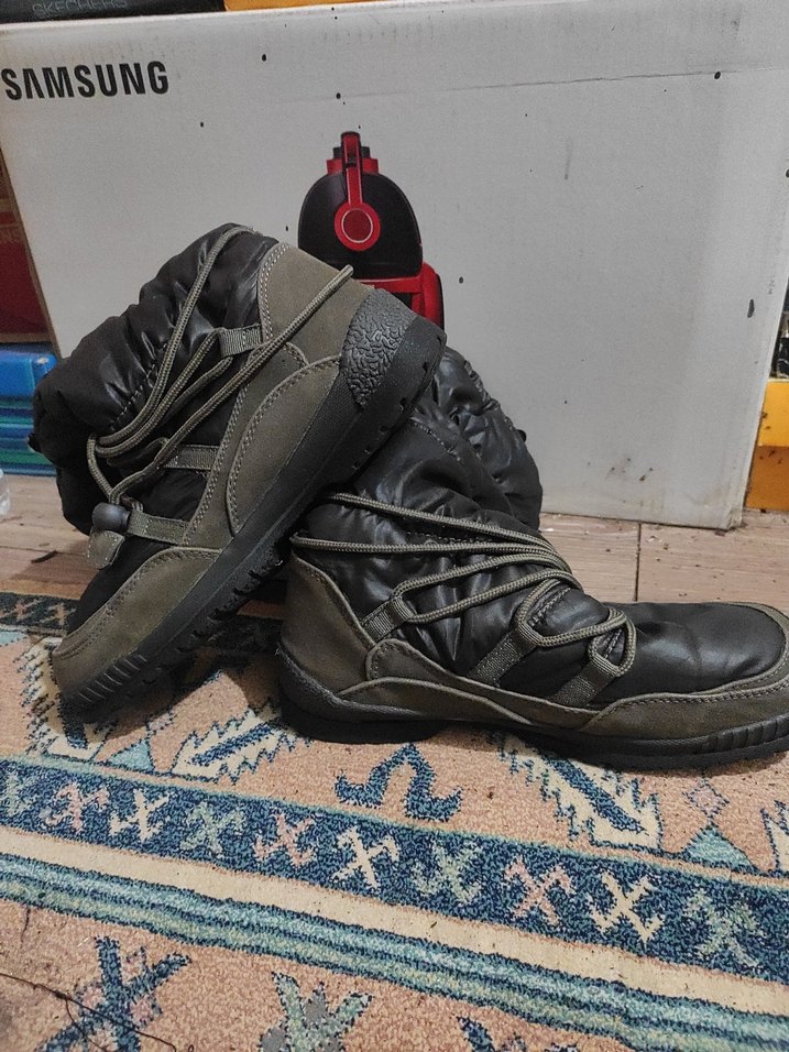 Gri renkte, bağcıklı botları. Sokak stiline uygun, rahat ve dayanıklı tabanlı günlük kullanım için ideal.