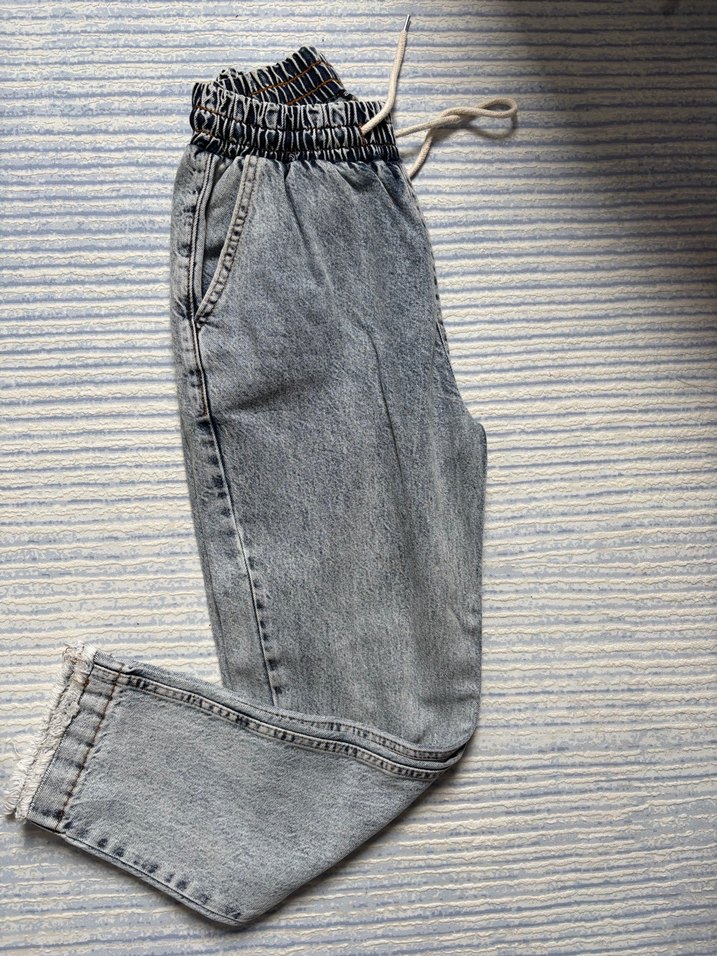 Gri batik desenli, bol kesim midi uzunlukta kadın kot pantolon, bağcıklı kemer detaylıdır. Ambar marka