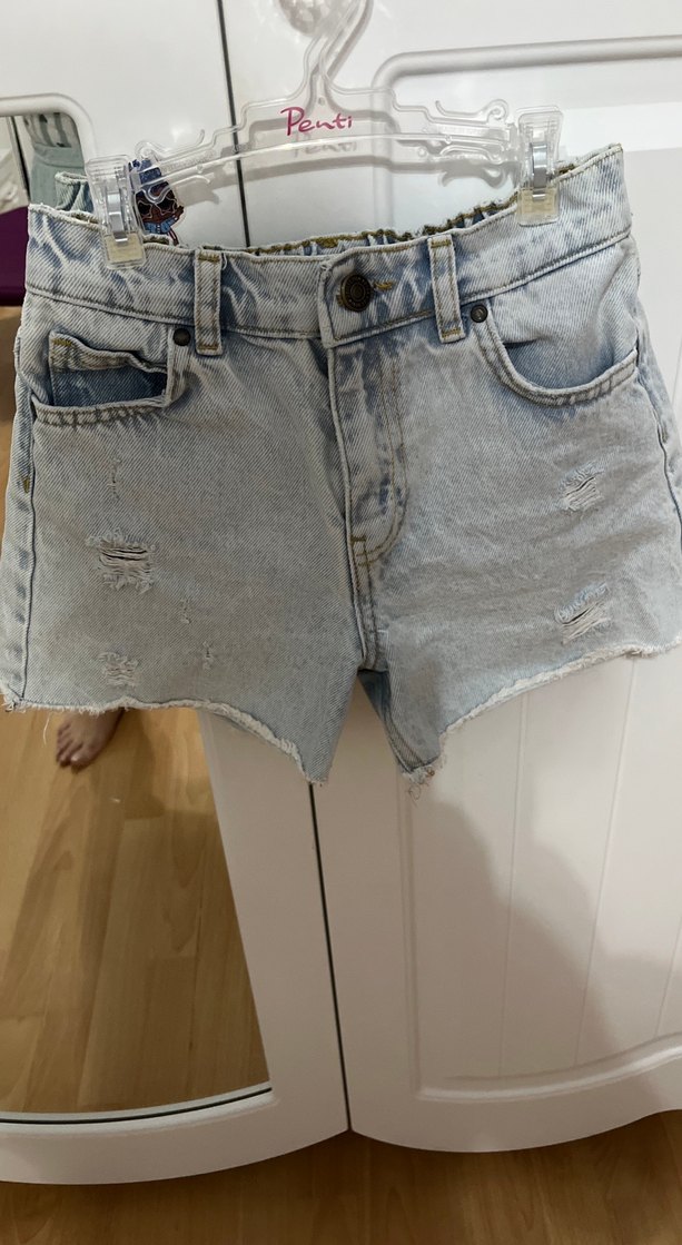 Gri Bağcıklı Mini coçuk Denim Şort