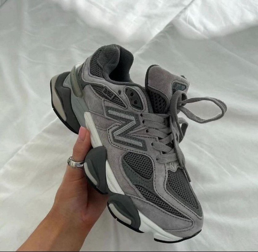 Gri bağcıklı New Balance spor ayakkabı, kauçuk tabanlı ve sportif sokak stili tasarımına sahip.