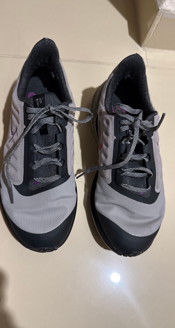 Gri bağcıklı kadın spor ayakkabıları, lastik taban ve stiletto topuk ile normcore tarzını bir araya getiriyor. Hem sportif hem şık görünüme uygun.