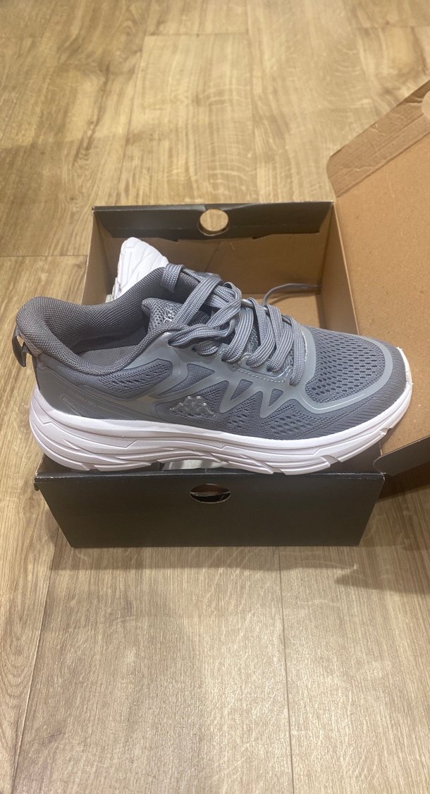 Bu gri bağcıklı spor ayakkabılar platform topuklu ve baskılı desenlidir. Kauçuk malzemeden yapılmıştır ve sokak stili için uygundur. 36 ve 37 mevcut