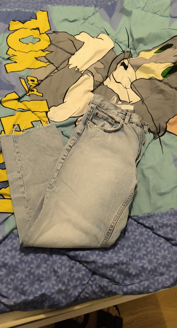Gri bağcıklı ve bağlama detaylı, salaş kesim midi uzunlukta, kot kumaştan yapılmış günlük kullanıma uygun pantolon. orjinal