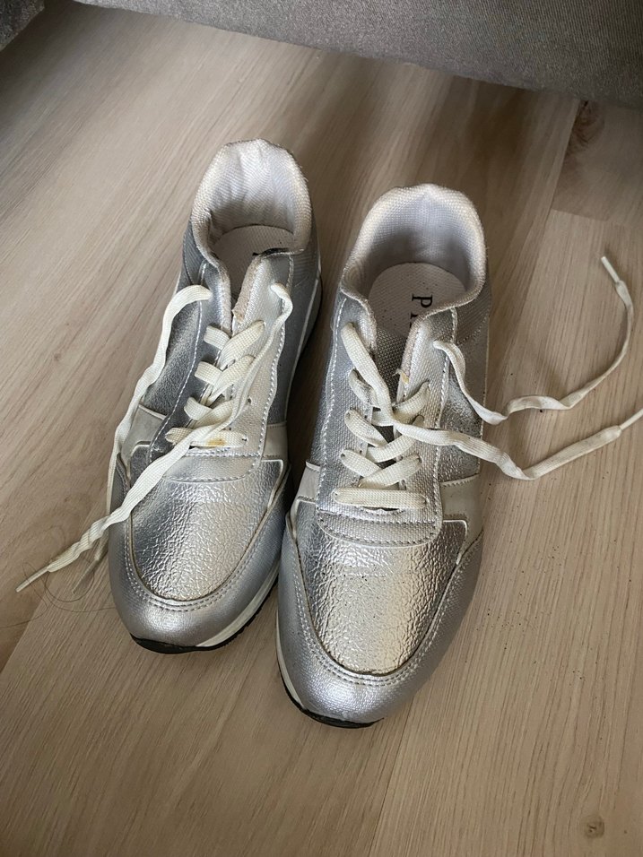 Gri renkli, bağcıklı ve spor ile günlük kullanım için uygun kadın spor ayakkabısı. ♀️