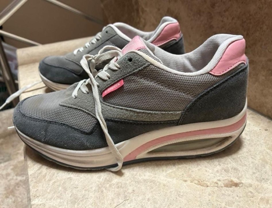 Gri renkte, bağcıklı ve ince topuklu kadın spor sneaker. Kauçuk tabanlı, spor ve sokak modası stilini birleştirir. Trendy ve rahat bir seçim.