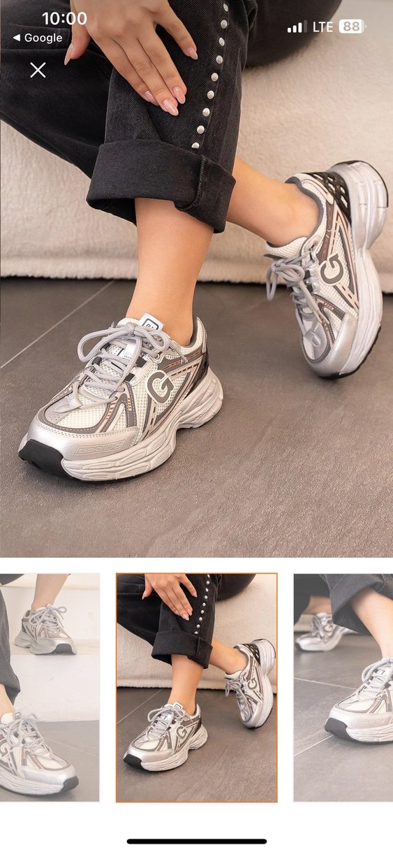 Gri renkte, bağcıklı ve baskılı desenli kadın sneakers. Yüksek topuklu ve kauçuk tabanlı, spor ve günlük kullanıma uygun.