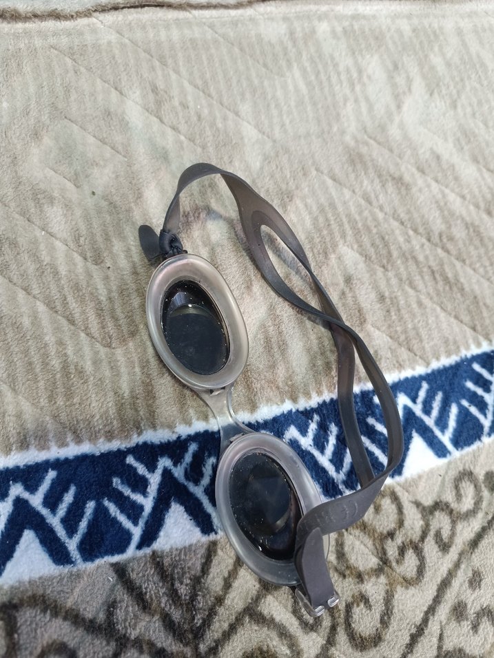 Gri bağcıklı yüzücü gözlüğü, rahat ve uyumlu bir dış mekan kullanımı için tasarlanmıştır. Bağcıklı kayışı ve bağlama detayı şık bir görünüm sunar.