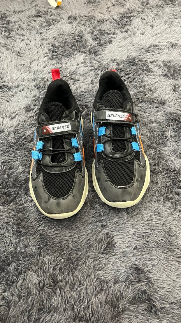 Gri bağcıksız erkek çocuk spor ayakkabısı, bağcıksız ve bağlama bantlıdır. Kauçuk tabanlı, modern sokak stiline uygun. Marka: Arvenzo.