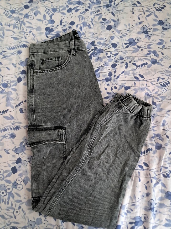 Gri tonlarda, bağlamalı bel detaylı, bol kesim midi uzunlukta erkek denim pantolon. Rahat ve sokak stiline uygun.
