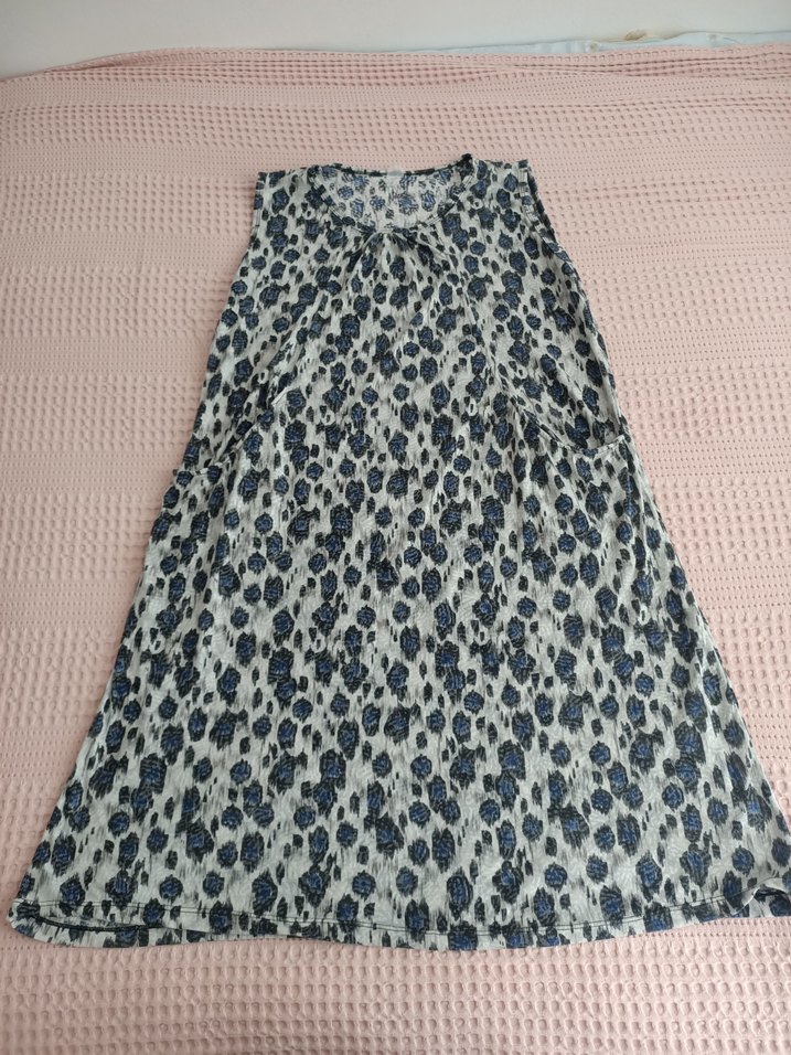 Gri bağlama desenli, dantel detaylı uzun hamile elbisesi, bol kesimiyle rahat ve bohem bir tarz sunar.