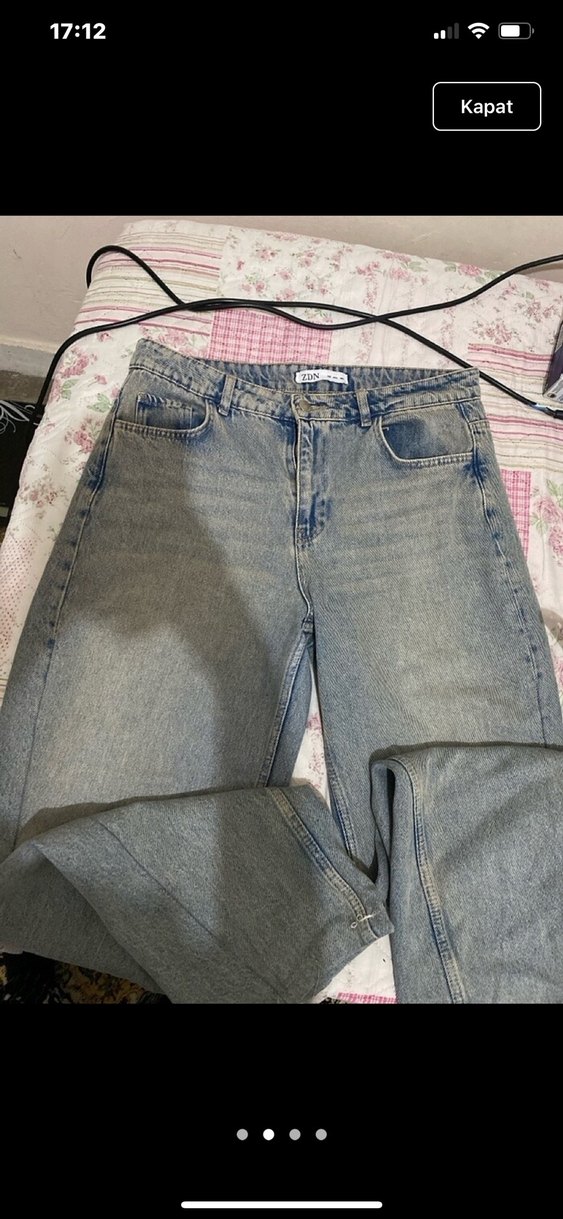 Gri bağlama desenli, düğmeli, bol kesim midi kot pantolon. Rahat ve gündelik kullanıma uygun normcore tarzda.