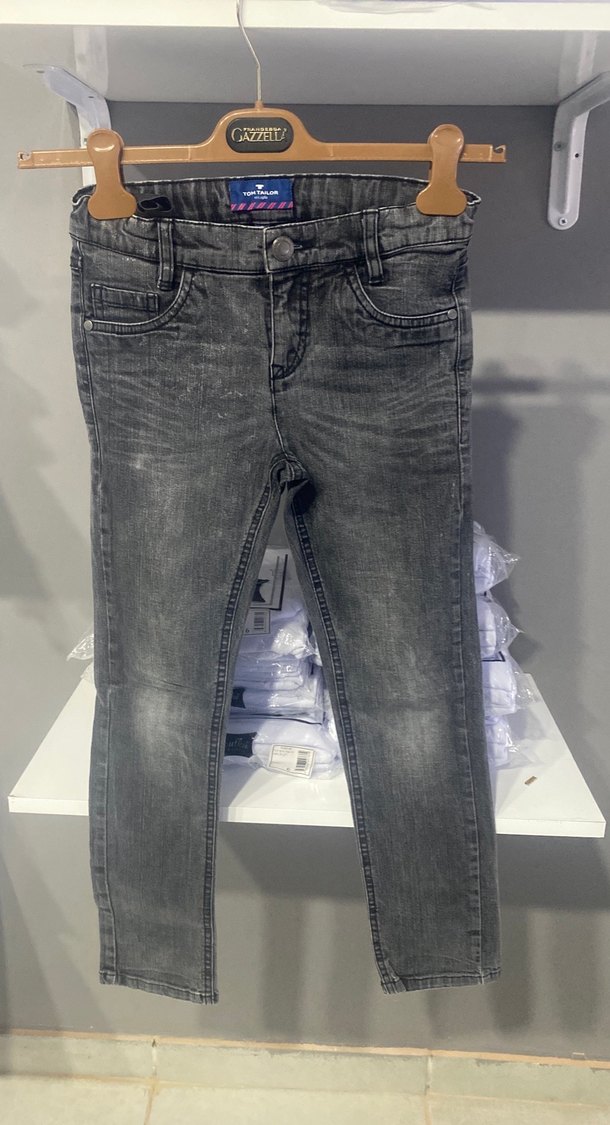 Gri Bağlama Desenli Erkek Çocuk Denim Pantolon