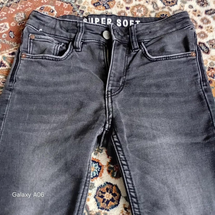 Gri bağlama desenli, düğmeli ve fitted kesim erkek çocuk denim pantolon. Günlük sokak stili için uygundur. İç etiketinde 'SUPER SOFT' ifadesi bulunur. beli ayarlanabilir lastiklidir