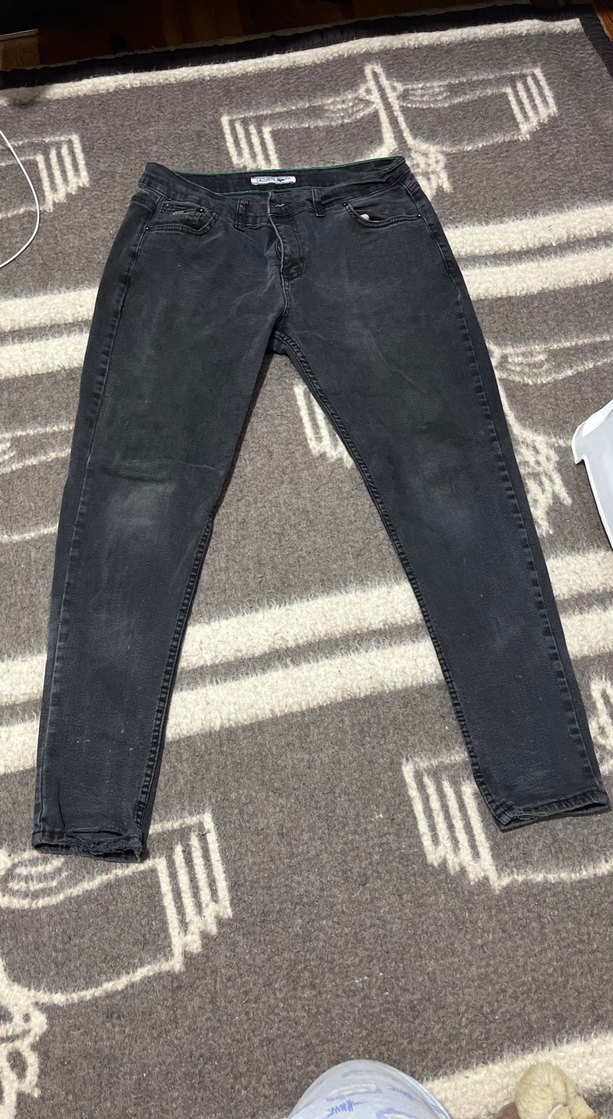 Gri Bağlama Desenli Kadın Denim Jean